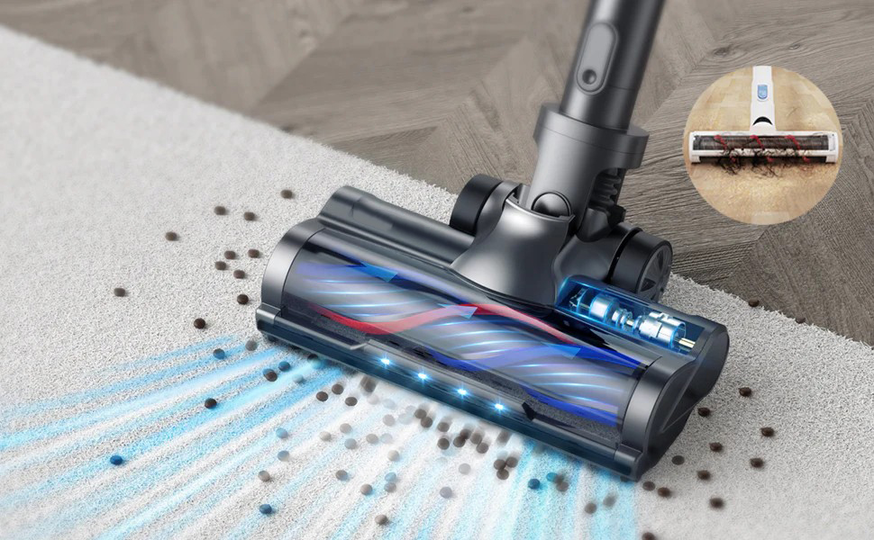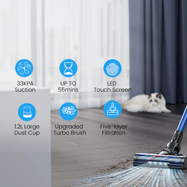 Håll ditt hem fläckfritt med dammsugaren som erbjuder imponerande 55 minuters kontinuerlig drift på en enda laddning.